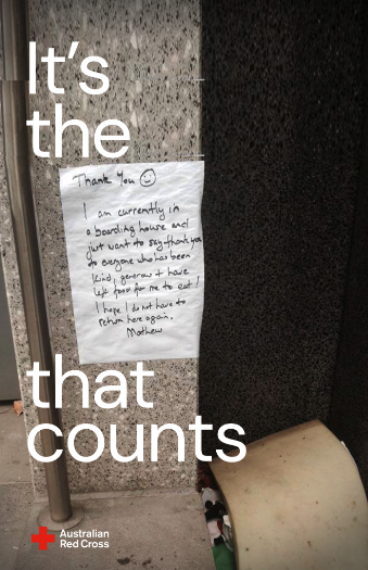 Red Cross Good Gifts are donations you can buy on behalf of someone that range from reuniting families in war zones to helping someone on the streets in your local community get a hot meal. We created a campaign that took the excuse we make for bad gifts ‘it’s the thought counts’ and reframed it to show how much your gift can count to someone else this Christmas.